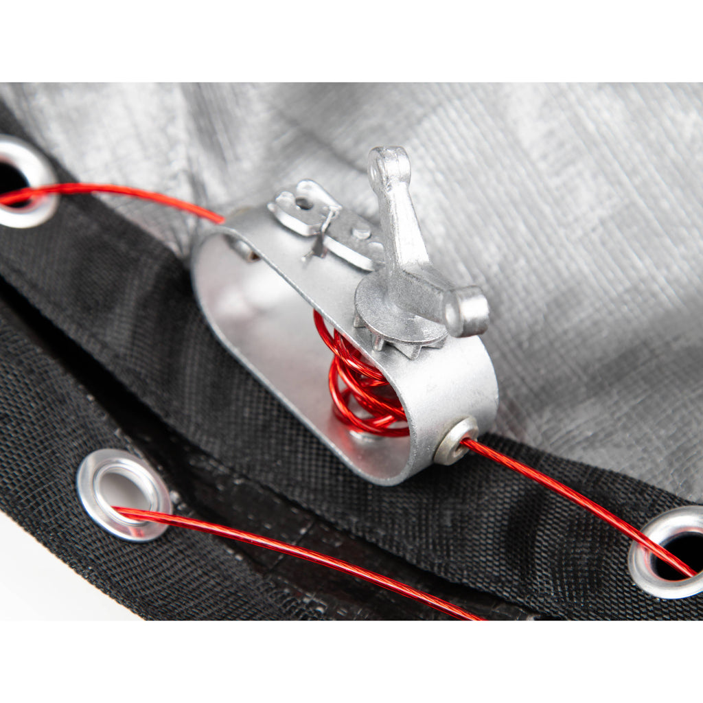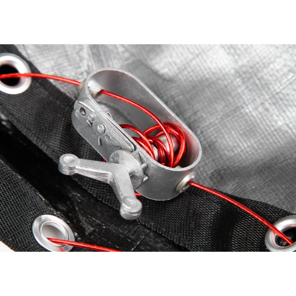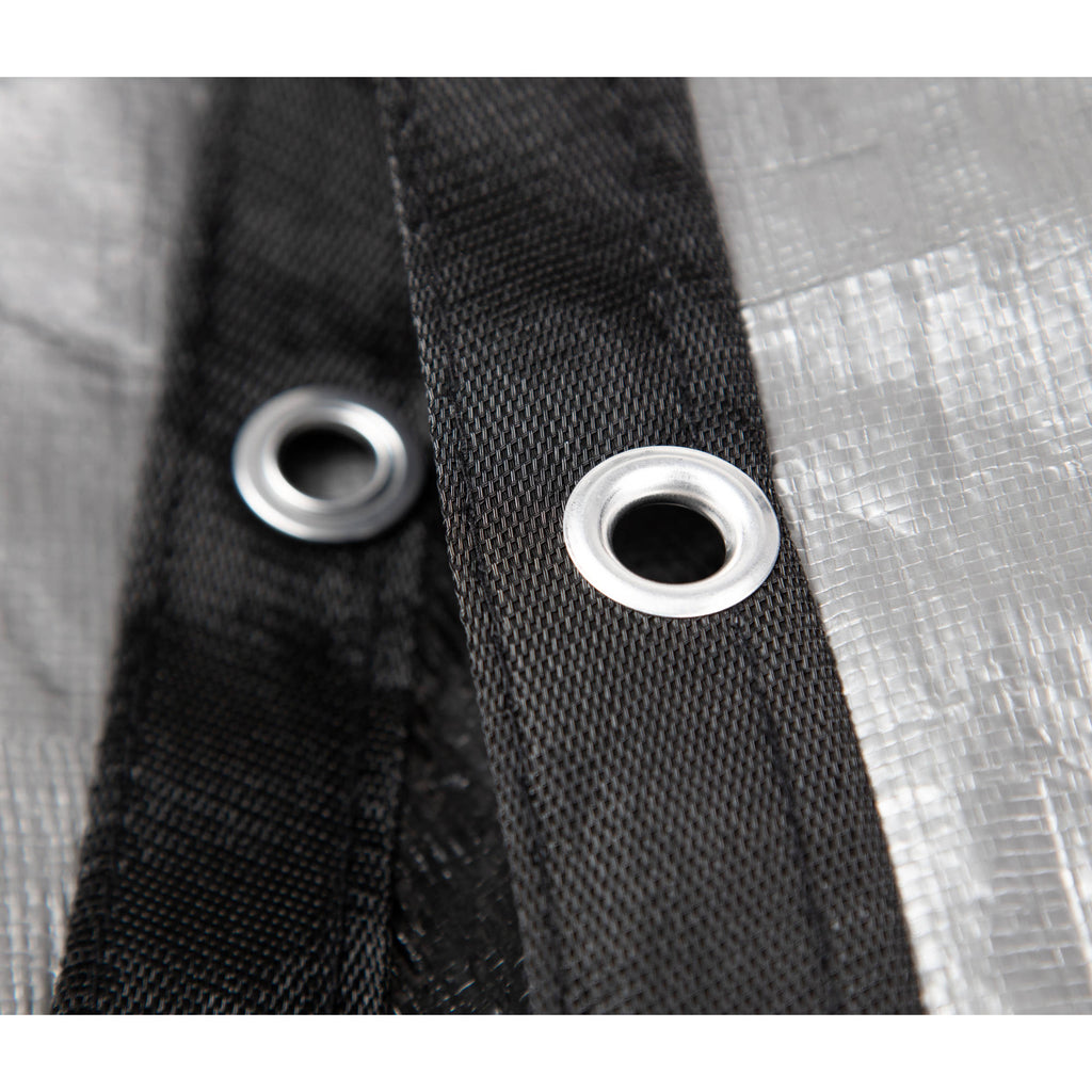 - Sewn-in loops every 4-ft so you can secure your cover with water bags; extra grommets on corners for tie downs