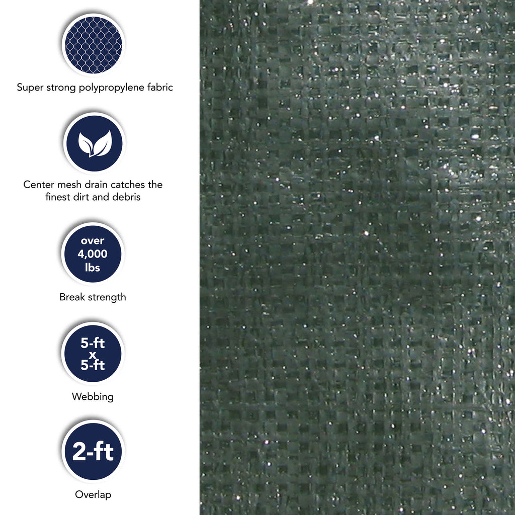 Safeguard your in-ground pool during the off season with an Arctic Armor Solid Safety Cover. Crafted from maximum-strength polypropylene with a break strength of over 4000-lbs, this premium cover provides the ultimate protection for your family. Each cover has 5x5 spacing with double-straps and triple-stitching for durability. Heavy-duty brass anchors hold the cover in place and recess flush with the pool deck when it’s time to swim. In addition to its safety features, Arctic Armor safety covers provide excellent winter protection for your pool. The center drain catches dirt and debris, but still allows water through, eliminating the hassle of pumping water off your cover each spring. Features a 2-ft overlap for a proper fit. The cover comes complete with brass anchors, stainless-steel springs, buckles, installation tools, and an off-season storage bag. Backed by a 20-year warranty with 1 year fully covered.Attributes