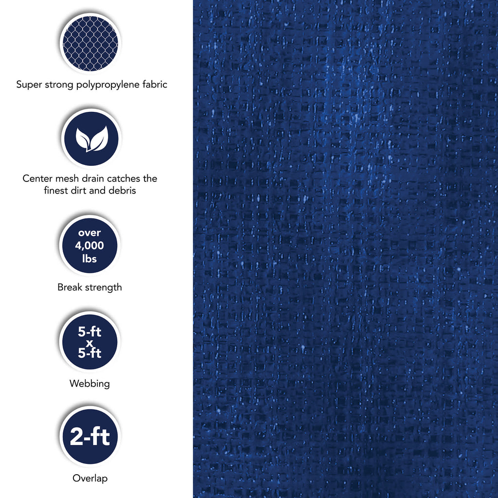 Safeguard your in-ground pool during the off season with an Arctic Armor Solid Safety Cover. Crafted from maximum-strength, two-ply polypropylene mesh with a break strength of over 4000-lbs, this premium cover provides the ultimate protection for your family. Each cover has 5x5 spacing with double-straps and triple-stitching for durability. Heavy-duty brass anchors hold the cover in place and recess flush with the pool deck when it’s time to swim. In addition to its safety features, Arctic Armor safety covers provide excellent winter protection for your pool. The center drain catches dirt and debris, but still allows water through, eliminating the hassle of pumping water off your cover each spring. Features a 2-ft overlap for a proper fit and a 4-ft x 8-ft center end step section. The cover comes complete with brass anchors, stainless-steel springs, buckles, installation tools, and an off-season storage bag. Backed by a 20-year warranty with 1 year fully covered.