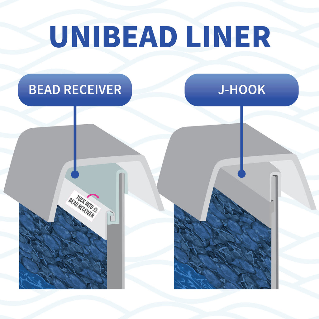 An update to an enduring classic, the Pebble Cove Unibead Liner features a striking blue rock border atop a serene water reflection pattern. The rich, saturated blues exude sophistication and create an inviting ambiance for any above-ground pool. Crafted from heavy-gauge, premium vinyl, this liner includes UV inhibitors to guard against fading and damage from sunlight and chemicals. The welded seams ensure a smooth surface and long-lasting durability. Backed by a 25-year warranty.Attributes