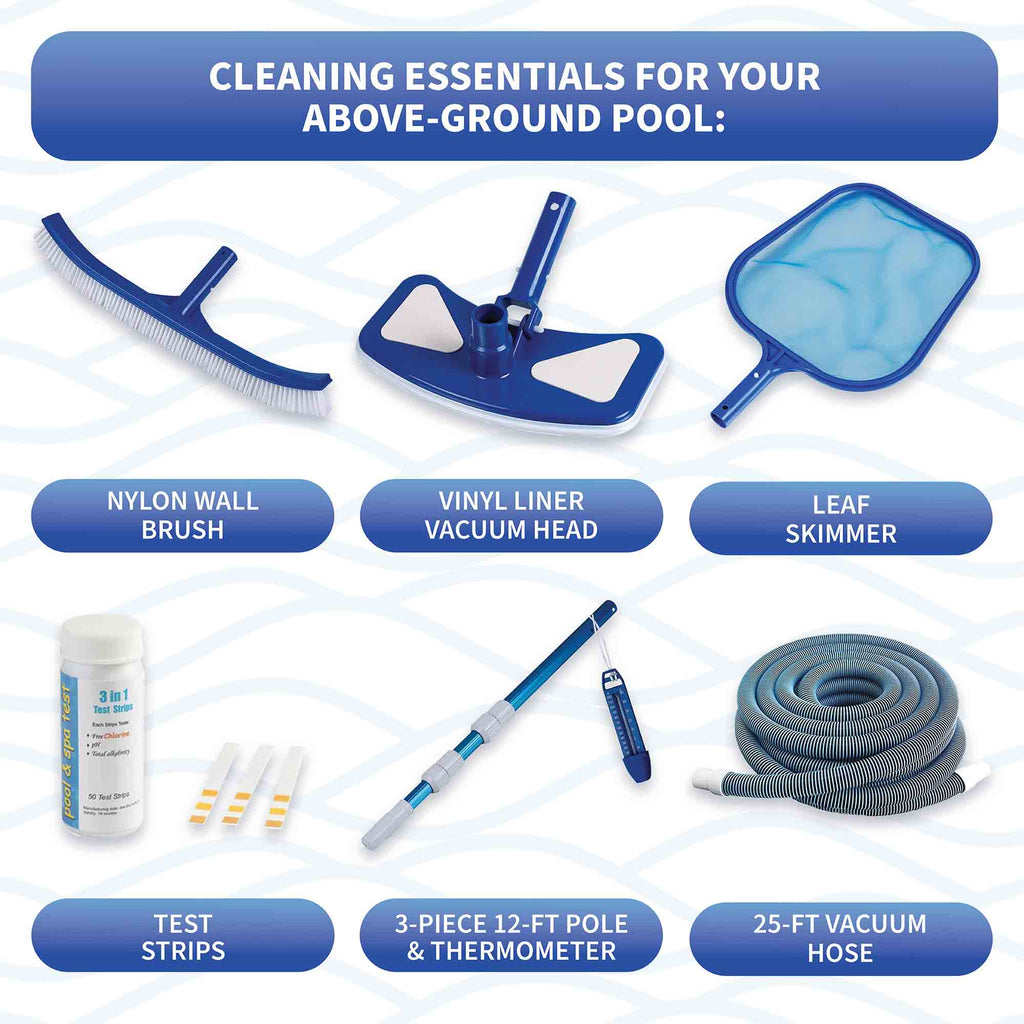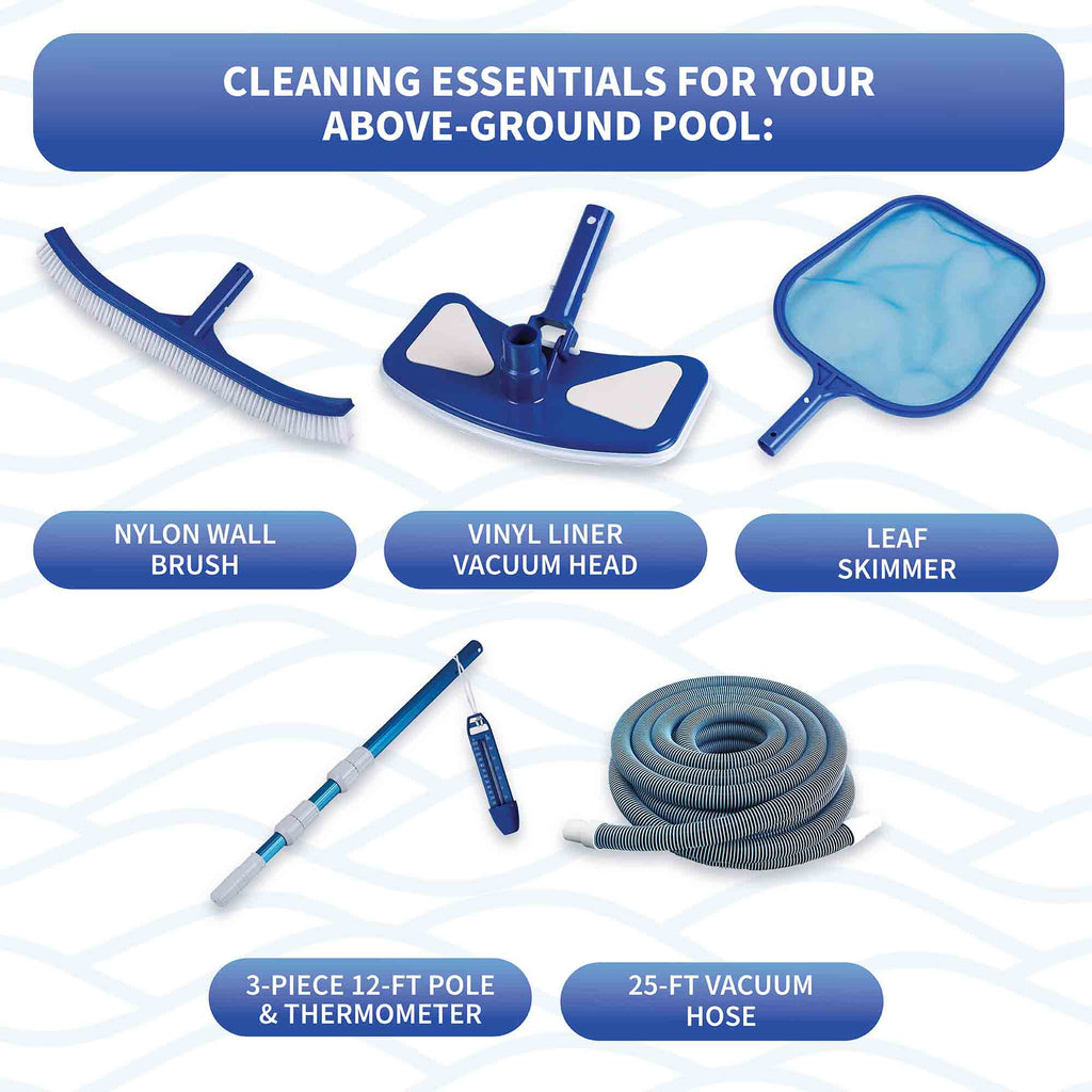 - Includes a standard maintenance kit for above-ground pools