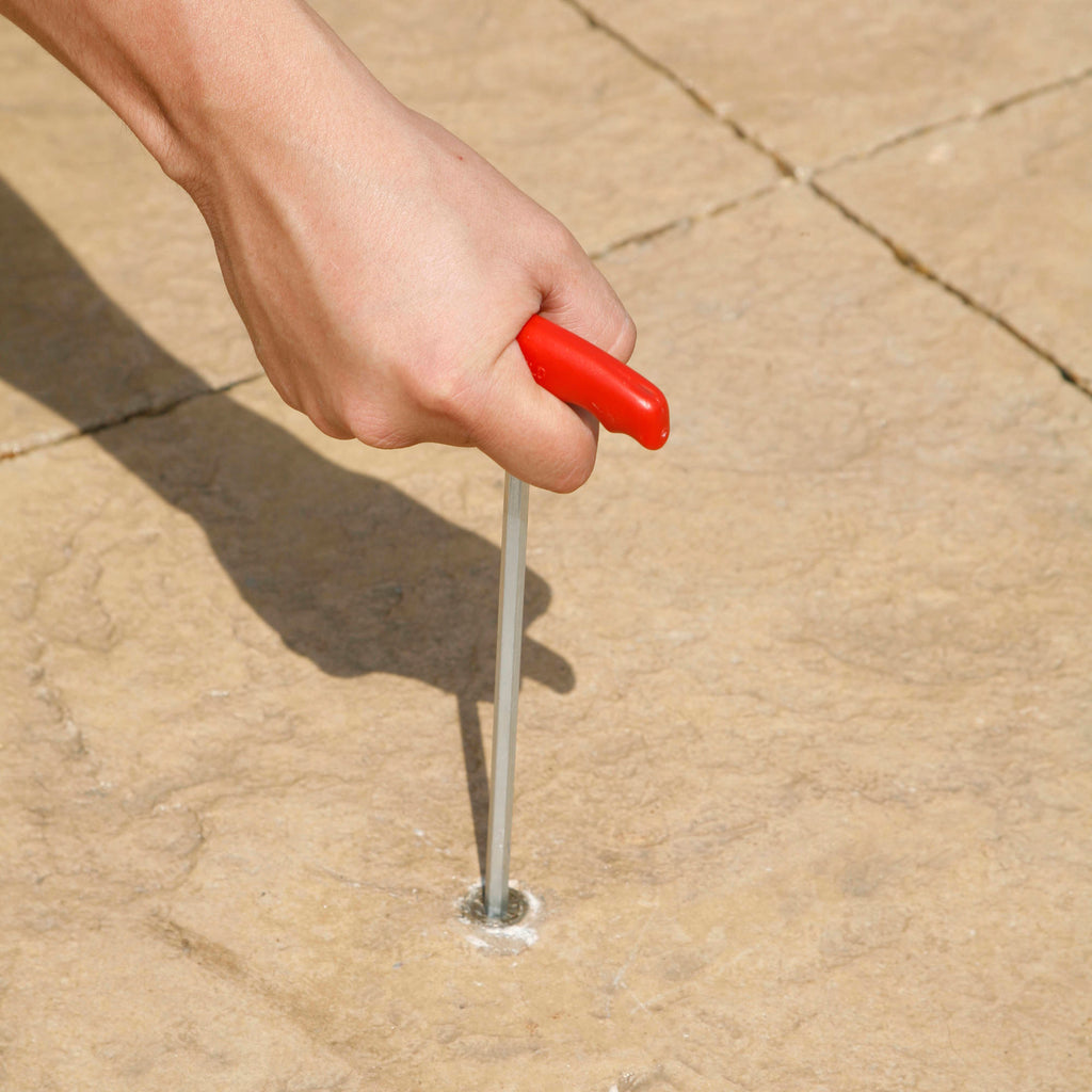- Drill and tamp style brass anchoring system permanently secures anchors in concrete
