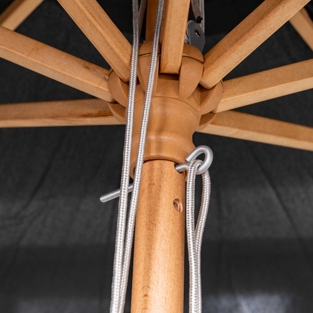 A great way to kick back, relax and escape from the stress of the day. This Cenote 9-ft Octagon Market umbrella was built to last. Its solid 1.5-in diameter hardwood pole and 8-ribs provide a sturdy support system. Keep breezes at bay with a single wind vent that allows air to easily escape during gusts. The durable, weather-resistant Breez-Tex™ canopy provides years of relaxing shade for your patio or deck. A dual pulley-and-pin system makes it easy to open and close. Its decorative polymer finial adds a finishing touch. This stylish shade system instantly delivers up to 57 square feet of shade space providing necessary relief during those grueling hot summer days. The Cenote umbrella is backed with a 3-year Breez-Tex™ canopy fabric warranty and a 1-year warranty on the hardwood umbrella pole and support system. Base sold separately.Attributes